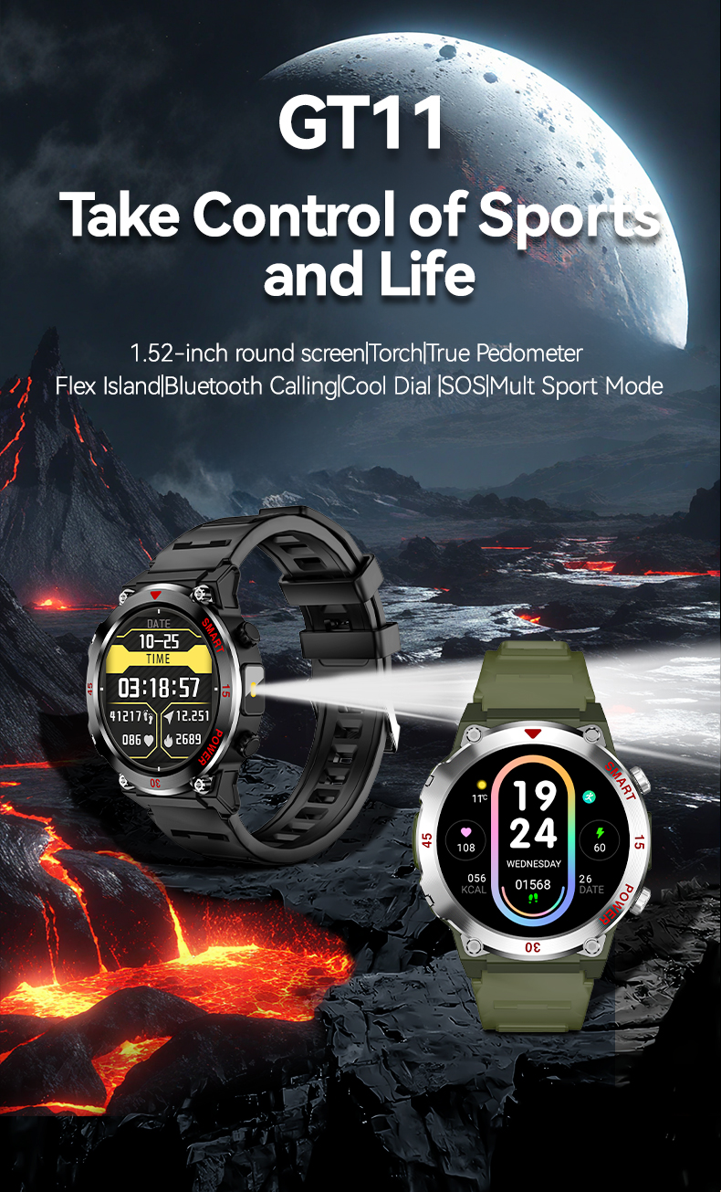 Get more with GT11 Smartwatch! Enjoy Bluetooth calls, all-day health tracking (blood pressure, heart rate, sleep), & IP67 waterproof for workouts. Long-lasting 200mAh battery, multi-language support, & compatibility with Android/iOS. Affordable price, full features – ideal for active lifestyles!