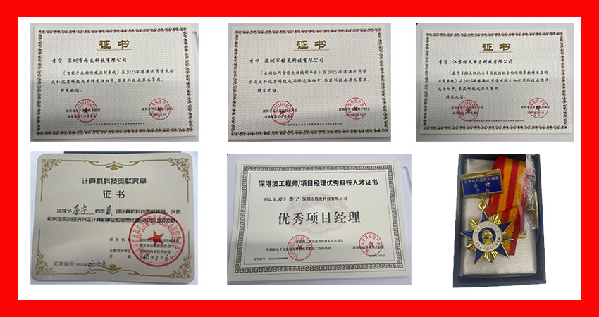 Mr. Li Ning was personally awarded the “Computer Science and Technology Contribution Medal (Second Class)”, the title of “Outstanding Project Manager,” and the “Outstanding Science and Technology Talent Certificate for Engineers/Project Managers in the Guangdong–Hong Kong–Macao Greater Bay Area.”